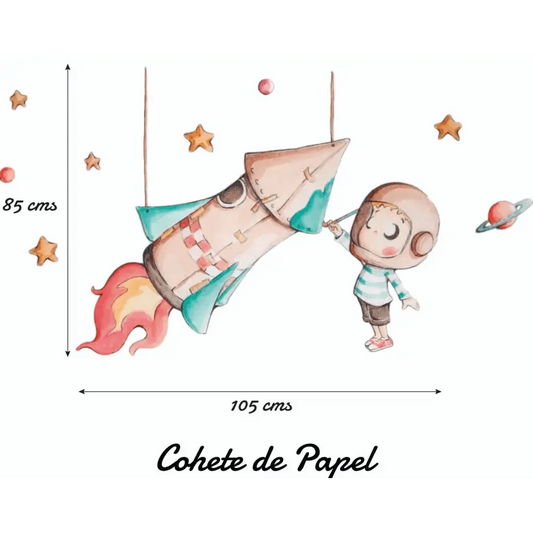 Vinilo Infantil COHETE DE PAPEL - Vinilo Infantil Cohete para Sueños de Ciguena