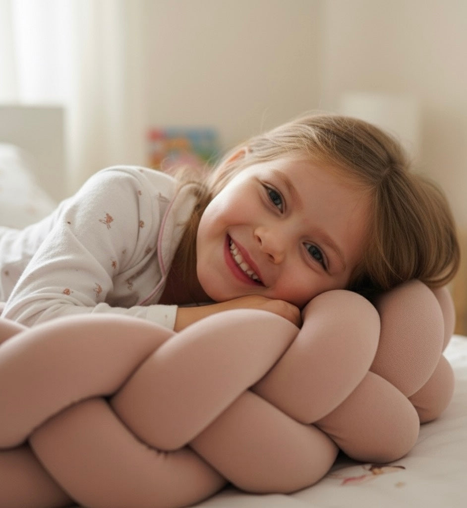 Nuestra trenza protectora cuna rosa presenta un diseño elegante que complementa cualquier decoración infantil. Su tono suave y encantador aporta un toque de calidez y armonía a la habitación. Además, su versatilidad permite que la uses no solo en la cuna, sino también en la cama o como decorativa en muebles.