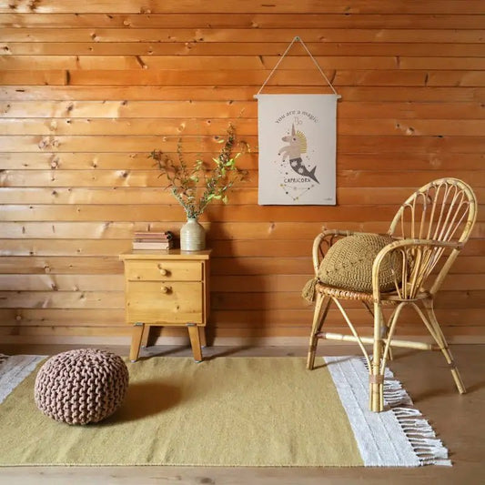 Almofada decorativa boémia algodão crochet PLUME MOSTARDA