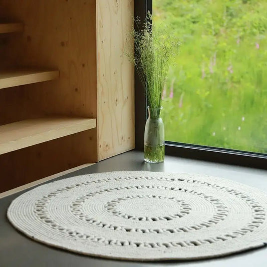 Tapis laine feutrée rond ajourée BIBEK GREY S